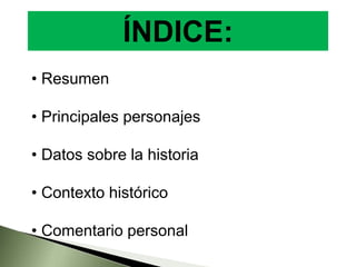 Este documento resume una novela que narra la vida de una familia de campesinos que trabajan en un cortijo en la Extremadura de los años 60 bajo la dictadura de Franco. La familia sufre humillaciones por parte del dueño del cortijo y solo aspiran a que sus hijos estudien para tener un futuro mejor. La historia explora temas como la opresión de las clases altas sobre las bajas y la falta de educación y derechos durante este periodo.