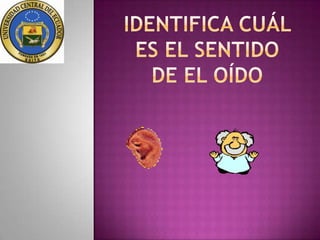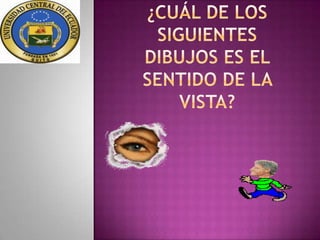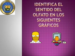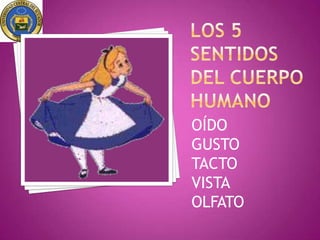 El documento presenta información sobre los cinco sentidos: la vista, el oído, el gusto, el tacto y el olfato. Cada sentido se define brevemente en una oración, describiendo su función principal en la percepción sensorial.