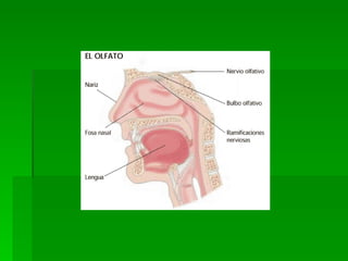 Los sentidos permiten percibir información del exterior a través de órganos especializados y transmitirla al cerebro mediante nervios. Los principales sentidos son la vista a través del ojo, el oído a través de la oreja, el gusto a través de la boca, el olfato a través de la nariz y el tacto a través de la piel. Cada sentido cuenta con estructuras y mecanismos específicos para captar los estímulos correspondientes y enviar las señales sensoriales al cerebro.