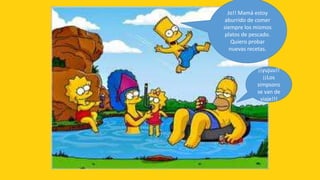 El documento narra la historia de la familia Simpson que viaja a Tokio, Japón y Roma, Italia para probar nuevas recetas de pescado. En cada ciudad visitada, los Simpson prueban platillos típicos como sushi en Japón y pizza de atún en Italia. Al regresar a Springfield, Estados Unidos, Marge sorprende a la familia llevándolos a un restaurante nuevo donde prueban hamburguesas y filetes de pescado. A lo largo del viaje, a Bart le encanta descubrir que el pescado