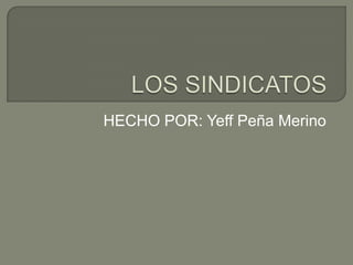 Este documento resume lo que son los sindicatos, su historia y su papel en el Perú. Explica que un sindicato es una organización de trabajadores que defiende sus intereses laborales. Detalla que la historia sindical se desarrolló en el siglo XIX para proteger los derechos de los trabajadores. Finalmente, describe una huelga reciente en el Perú liderada por el sindicato de una mina para exigir el reinicio de operaciones.