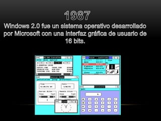 El documento presenta una línea de tiempo que resume hitos clave en el desarrollo de sistemas operativos de Apple, Microsoft y Linux entre 1988 y 2008, incluyendo el lanzamiento de versiones de Macintosh, Windows y Linux.