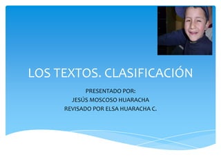 Este documento clasifica y describe diferentes tipos de textos. Presenta una clasificación de los textos según su forma o género (narrativo, descriptivo, expositivo, argumentativo, instructivo), su contenido temático, su estructura formal y la ubicación de la idea principal. Explica las características y recursos gramaticales de cada tipo de texto.