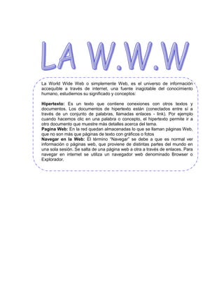 El documento resume la historia del desarrollo de Internet desde la década de 1960 hasta el año 2000. En los años 1960, el ejército estadounidense creó ARPANET como una red de comunicaciones militar descentralizada. En los años 1970, ARPANET se expandió y se conectó a otras redes. En los años 1980 se establecieron protocolos como TCP/IP y se crearon servicios como el IRC. En los años 1990 surgió la World Wide Web y comenzó la expansión comercial de Internet. Para el año 2000, Internet tenía más de mil millones de usuarios