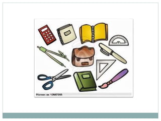 Este documento enumera los artículos comunes que los estudiantes suelen llevar en sus mochilas, incluyendo lápices, libros, reglas, estuches, rotuladores, diccionarios, gomas de borrar, grapadoras, sacapuntas y cuadernos.