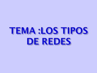 El documento describe diferentes tipos de redes, incluyendo LAN, WAN, MAN, CAN y PAN. Explica que las LAN son redes pequeñas dentro de una oficina o edificio que operan a alta velocidad. Las WAN se extienden a grandes áreas geográficas como países, conectando LAN a través de redes públicas. También describe características de las redes como tecnología de difusión, cableado, capacidad, alcance y flexibilidad.