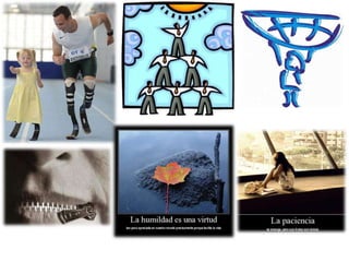 Este documento habla sobre los valores y cómo pueden llevar a la felicidad. Explica que los valores son cualidades que determinan el valor ético o estético de las cosas. Identifica varias clases de valores como materiales, estéticos, éticos, espirituales, metafísicos y físicos. Luego, discute valores como la superación personal, el esfuerzo, la fortaleza, la prudencia, la humildad, la tolerancia y la paciencia, los cuales pueden ayudar a alcanzar la felicidad a través del des