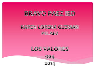 Los valores son principios que guían el comportamiento humano y ayudan a las personas a elegir entre opciones. Existen valores universales como la honestidad y el respeto que son importantes para la convivencia social, así como valores personales, familiares y socio-culturales. Los valores también pueden clasificarse como materiales, espirituales, morales o éticos fundamentales como la verdad, responsabilidad, justicia y libertad.