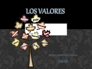 El documento trata sobre varios conceptos relacionados con valores humanos como el respeto, la amistad, la honestidad, la responsabilidad, la solidaridad, la tolerancia y el amor. Define cada uno de estos conceptos de forma breve describiendo su significado principal en relaciones interpersonales y la sociedad.