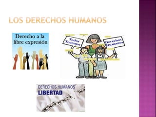 El documento describe los derechos humanos como inherentes a todos los seres humanos sin discriminación. Estos derechos son a menudo protegidos por la ley internacional y los tratados, y obligan a los gobiernos a promoverlos y protegerlos. Las características fundamentales de los derechos humanos son que son universales, inalienables, irrenunciables e imprescriptibles.