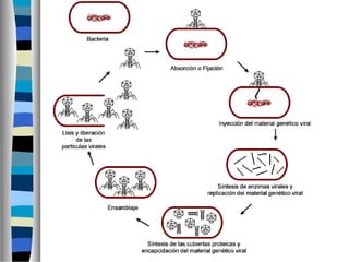 Este documento resume brevemente la historia y características de los virus. Los virus son entes ultramicroscópicos compuestos solo de proteínas y ácido nucleico que no tienen metabolismo propio y requieren una célula huésped para replicarse. Se clasifican según su estructura, tipo de ácido nucleico, célula que infectan y enfermedad causada. Para replicarse, los virus utilizan dos ciclos: el lítico, que destruye la célula, y el lisogénico, que la mantiene latente. Las cél