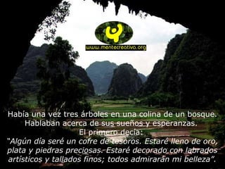 Tres árboles hablan sobre sus sueños de convertirse en un cofre, una embarcación y el árbol más grande. Son cortados por leñadores y convertidos en un pesebre, una balsa y tablas. Más tarde descubren que sus nuevos roles les permitieron albergar al niño Jesús, transportar a Jesús durante una tormenta, y servir como la cruz en la que Jesús fue crucificado, cumpliendo así sus sueños de una manera que no habían imaginado.
