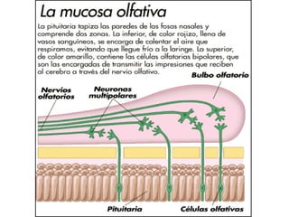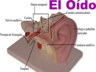 El documento habla sobre los cinco sentidos (vista, oído, olfato, gusto y tacto) y los órganos asociados a cada uno. Explica que la vista permite ver a través de los ojos, el oído permite oír a través de los oídos, el olfato permite oler a través de la nariz, el gusto permite probar sabores a través de la lengua y el tacto permite sentir texturas a través de la piel. Describe algunas partes internas clave de los ojos y los o