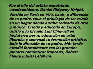 Louis Aston Knight nació en París en 1873 e hijo del artista estadounidense Daniel Ridgway Knight. Creció en un ambiente artístico y estudió arte formalmente con pintores románticos franceses. Es famoso por sus paisajes franceses alrededor de su casa en Beaumont-le-Roger, muchas de sus obras se conservan en colecciones de museos en todo el mundo.