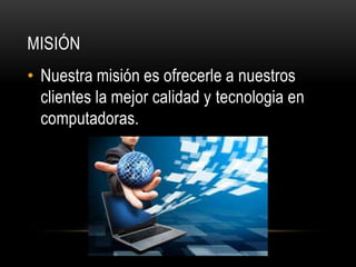 Loveland Computers es una compañía fundada por Walter Azko en la década de 1980 que se dedica a la venta e importación de computadoras ofreciendo alta tecnología a precios accesibles. Su misión es brindar la mejor calidad y tecnología a sus clientes. En la actualidad busca expandirse a nivel mundial, mejorar continuamente sus productos, y convertirse en una empresa líder en el mercado de computadoras.