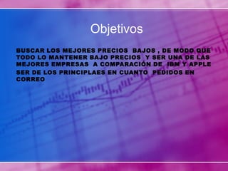 Loveland Computers presenta un plan de negocios para ofrecer los mejores precios bajos y ser una de las principales empresas de computadoras por correo a nivel nacional. El plan describe la competencia, el equipo de desarrollo, los objetivos de ventas trimestrales, las oportunidades y riesgos, y el concepto de negocio de venta de paquetes de computadoras por correo. El plan financiero muestra ventas trimestrales de $10 millones con ganancias del 6% de las ventas.