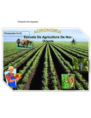 Este documento presenta una carátula creada por Agustín José Daniel López para la Escuela de Agricultura De Nor-Oriente. Incluye una etiqueta promocional, logos de la escuela y una gráfica que muestra la población estudiantil de la escuela dividida por grados.
