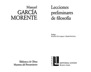 Este documento presenta una introducción al curso de filosofía. Explica que la filosofía debe ser vivida, no solo definida intelectualmente. Para comprender realmente qué es la filosofía, los estudiantes deben experimentarla directamente a través del curso, en lugar de recibir solo una definición. La filosofía debe ser explorada y experimentada personalmente a través de cuestiones específicas. Solo después de vivir aspectos de la filosofía podrán los estudiantes comenzar a definirla de manera significativa.