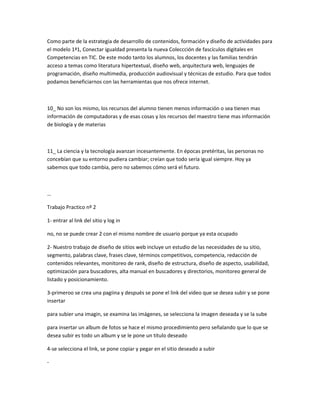 El Programa Conectar Igualdad es una iniciativa del gobierno argentino que busca reducir las brechas digitales, educativas y sociales a través de la distribución de 3 millones de netbooks a estudiantes y docentes de escuelas públicas entre 2010-2012. El programa también desarrolla contenidos digitales y capacita a los docentes para aprovechar las nuevas tecnologías en sus enseñanzas.