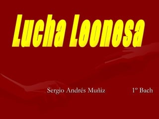 Este documento describe la lucha leonesa, un deporte tradicional de origen prerromano practicado en León. Explica que consiste en un combate entre dos luchadores que tratan de derribarse usando la fuerza o diferentes mañas como la cadera, el cadril o la dedilla. También detalla las categorías de peso, las formas de puntuación y caídas, y muestra videos como ejemplo.