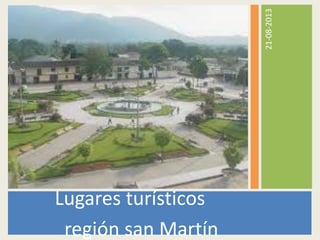El documento lista varios lugares turísticos populares en la región de San Martín en Perú, incluyendo baños termales y sulfurosos en Oromina, el Morro de Calzada, las cataratas de Ahuashiyacu y Huaripia, Tioyacu, Yacumama, y lugares como Milan-Moyobamba, Villa María y la Laguna de Sauce.