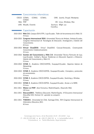 Luis Antonio Chamba es un ingeniero en sistemas y doctorando en ingeniería informática de Ecuador. Obtuvo una licenciatura en la Universidad Técnica Particular de Loja y realizó estudios de posgrado en la Universidad del País Vasco, incluyendo un máster en ingeniería computacional y sistemas inteligentes y un doctorado en ingeniería informática. Su tesis de maestría propuso un modelo de confianza para objetos de aprendizaje en comunidades virtuales. Ha trabajado como docente e investigador y también como consultor de seg