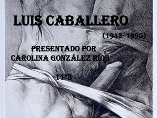 Luis Caballero fue un pintor y dibujante colombiano que se caracterizó por su gran interés en el desnudo masculino. Nació en Bogotá en 1943 y estudió en el Gimnasio Moderno y en Madrid. Más adelante enseñó en universidades en Bogotá y derivó su obra hacia representaciones únicas del cuerpo masculino, pasando por diferentes estilos como el clasicismo y lo abstracto. Se destaca su obra "La cuarta ambición" de 1990, realizada en gran formato. Caballero falleció en 1995 a la edad de