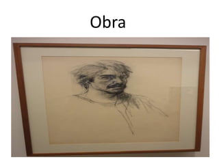 Este documento describe la obra Autorretrato del artista Luis Caballero, pintada en 1980 usando carboncillo sobre papel. Caballero pintó esta obra mientras estaba en París, donde se enfocó en retratar el cuerpo masculino desnudo. El documento también discute la filosofía artística de Caballero, quien creía en pintar lo que uno siente en lugar de complacer a otros o seguir tendencias intelectuales.