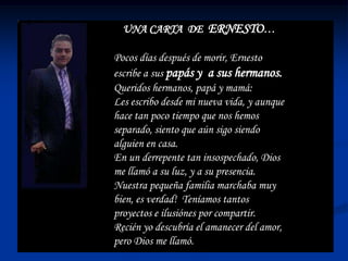 Luis Ernesto Triana Martínez escribe una emotiva carta tras su fallecimiento, asegurando a su familia que sigue vivo en un estado de paz y felicidad en la presencia de Dios. Agradece a sus padres por el amor y las enseñanzas que le brindaron, y les pide que vivan con valentía y alegría, recordándolo con amor en lugar de tristeza. La carta transmite un mensaje de esperanza y conexión espiritual, instando a sus seres queridos a seguir adelante en sus vidas.