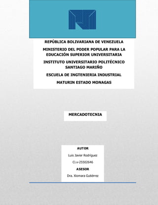Este documento presenta una introducción al concepto de mercadotecnia y explica algunos de sus elementos fundamentales. Define la mercadotecnia como el conjunto de técnicas para estudiar el mercado y comunicarse con los clientes, teniendo como base la relación de intercambio. Explica los tipos de estrategias de mercado, como las de crecimiento, diversificación y las de Porter. Define la mezcla de mercado como la combinación de las 4 pees (producto, precio, plaza y promoción) para satisfacer la demanda. También resume los principios de