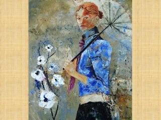 Un cartel advierte no tocar el ratón de una exposición interactiva, ya que el avance de los cuadros y la música es automático. Se pide poner los altavoces y escuchar la letra de las canciones mientras se disfruta de las imágenes.