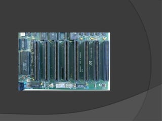 La placa base es la tarjeta principal de un computador que conecta los diferentes componentes. Contiene puertos de entrada y salida, ranuras de expansión, un chipset, BIOS y RAM. Proporciona la fuente de alimentación y el socket para el procesador. Permite conectar dispositivos externos como monitores, impresoras, redes y más.