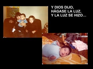 Este documento narra la creación del hombre y la mujer por Dios, y cómo cada uno se fue por su lado, unos al mar y otros a la montaña, para conquistar el mundo o vivir tranquilamente. Se menciona a una pareja llamada René y Luna a quienes Dios amaba, y cómo su historia de amor apenas comenzaba, pasando por diferentes etapas de sus vidas juntos.