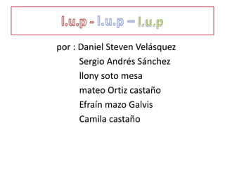 El documento presenta los nombres de 6 personas: Daniel Steven Velásquez, Sergio Andrés Sánchez, llony soto mesa, mateo Ortiz castaño, Efraín mazo Galvis y Camila castaño.