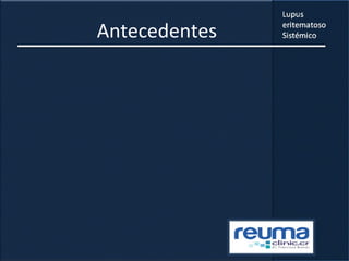1) El documento presenta información sobre el lupus eritematoso sistémico, incluyendo su incidencia, prevalencia, factores genéticos, efectos hormonales, patogenia, síntomas, manifestaciones, criterios de diagnóstico y comorbilidades.