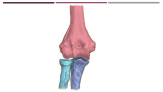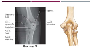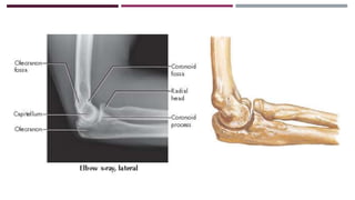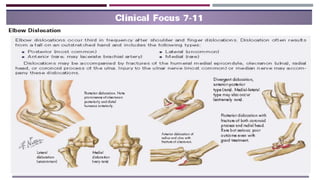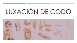 La luxación del codo involucra la salida de los huesos del antebrazo del húmero. Se trata mediante reducción temprana, preferiblemente dentro de las primeras 7 días, aplicando tracción suave al antebrazo mientras se flexiona gradualmente el codo. Puede haber lesiones asociadas como daño a nervios o ligamentos. Las complicaciones incluyen rigidez articular, osificación heterotópica o inestabilidad crónica.