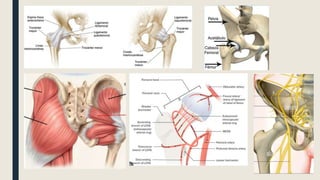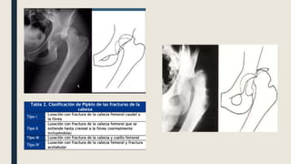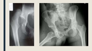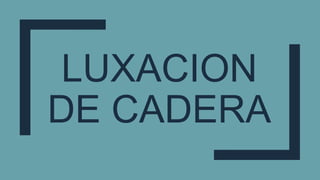 Este documento describe una luxación de cadera, una lesión grave e infrecuente causada típicamente por un trauma de alta energía. Explica la epidemiología, mecanismo, clasificación, síntomas clínicos, diagnóstico por imagen, tratamiento mediante reducción inmediata y rehabilitación, y posibles complicaciones como artrosis y necrosis avascular.