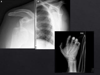 Este documento describe diferentes tipos de luxaciones, incluyendo su clasificación, mecanismos de lesión, signos clínicos, exámenes requeridos, y tratamiento. Se discuten luxaciones específicas como la luxación glenohumeral, la luxación de cadera, la luxación de rodilla, la luxación del codo y la luxación de falanges. El tratamiento generalmente involucra reducción cerrada o abierta seguida de inmovilización e iniciar rehabilitación temprana.