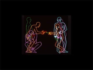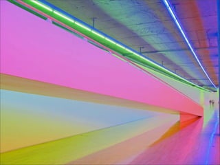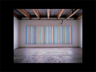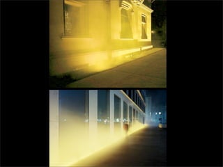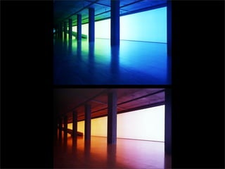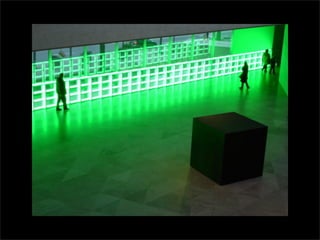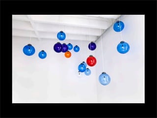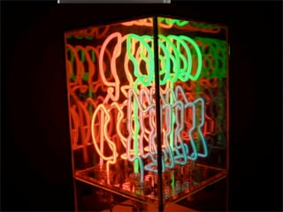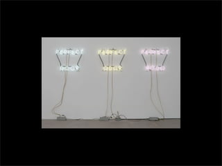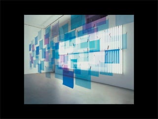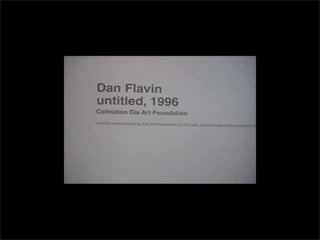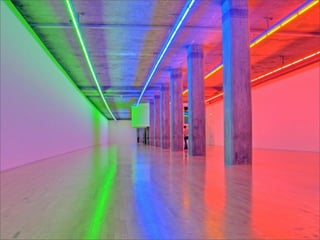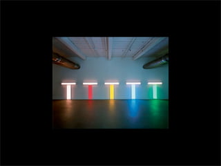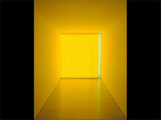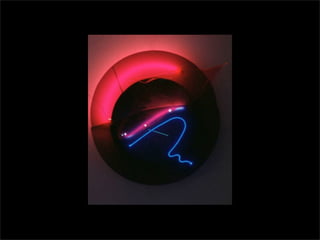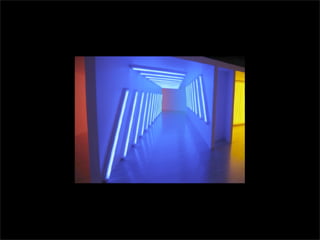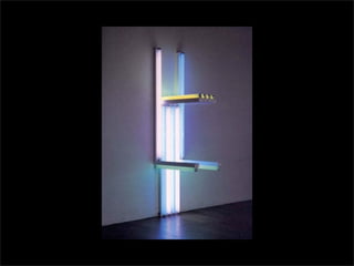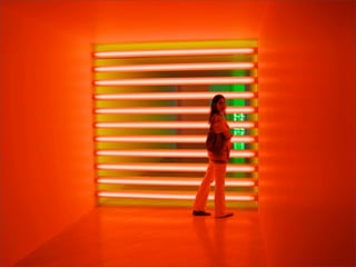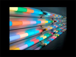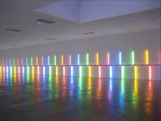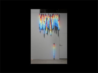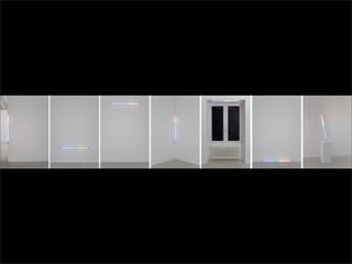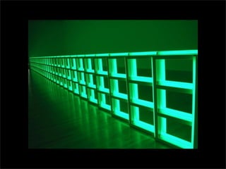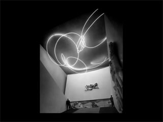 El documento lista los nombres y años de vida de varios artistas que trabajan con la luz como medio, incluyendo Lucio Fontana, Dan Flavin, Olafur Eliasson, Chryssa, Frida Blumenberg, Bruce Nauman, Ellis D Fogg, Spencer Finch y James Turrell. Además menciona otros ejemplos de artistas que usan la luz en su obra.