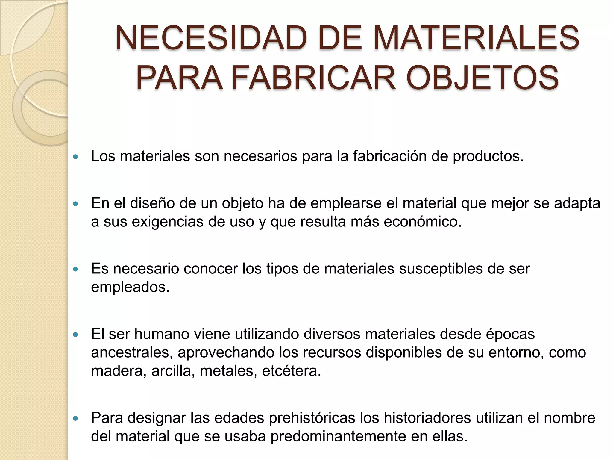 El documento describe los diferentes tipos de materiales utilizados a lo largo de la historia humana, incluyendo la Edad de Piedra, la Edad de Bronce y la Edad de Hierro. También explica las propiedades de los materiales naturales, artificiales y sintéticos, y proporciona detalles sobre las propiedades mecánicas, térmicas y químicas que son importantes para los metales. Por último, introduce algunos ensayos comunes utilizados para probar las propiedades de los materiales, como los ensayos de tra
