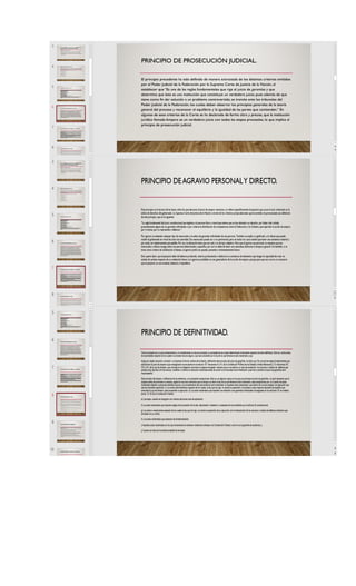 Este documento resume los principios constitucionales del juicio de amparo, incluyendo el principio de instancia de parte, el principio de prosecución judicial, el principio de agravio personal y directo, el principio de definitividad y el principio de estricto derecho. Explica que estos principios constituyen la base del funcionamiento procesal y sustancial del juicio de amparo, cuyo objetivo es controlar que los actos de autoridad respeten el marco constitucional.