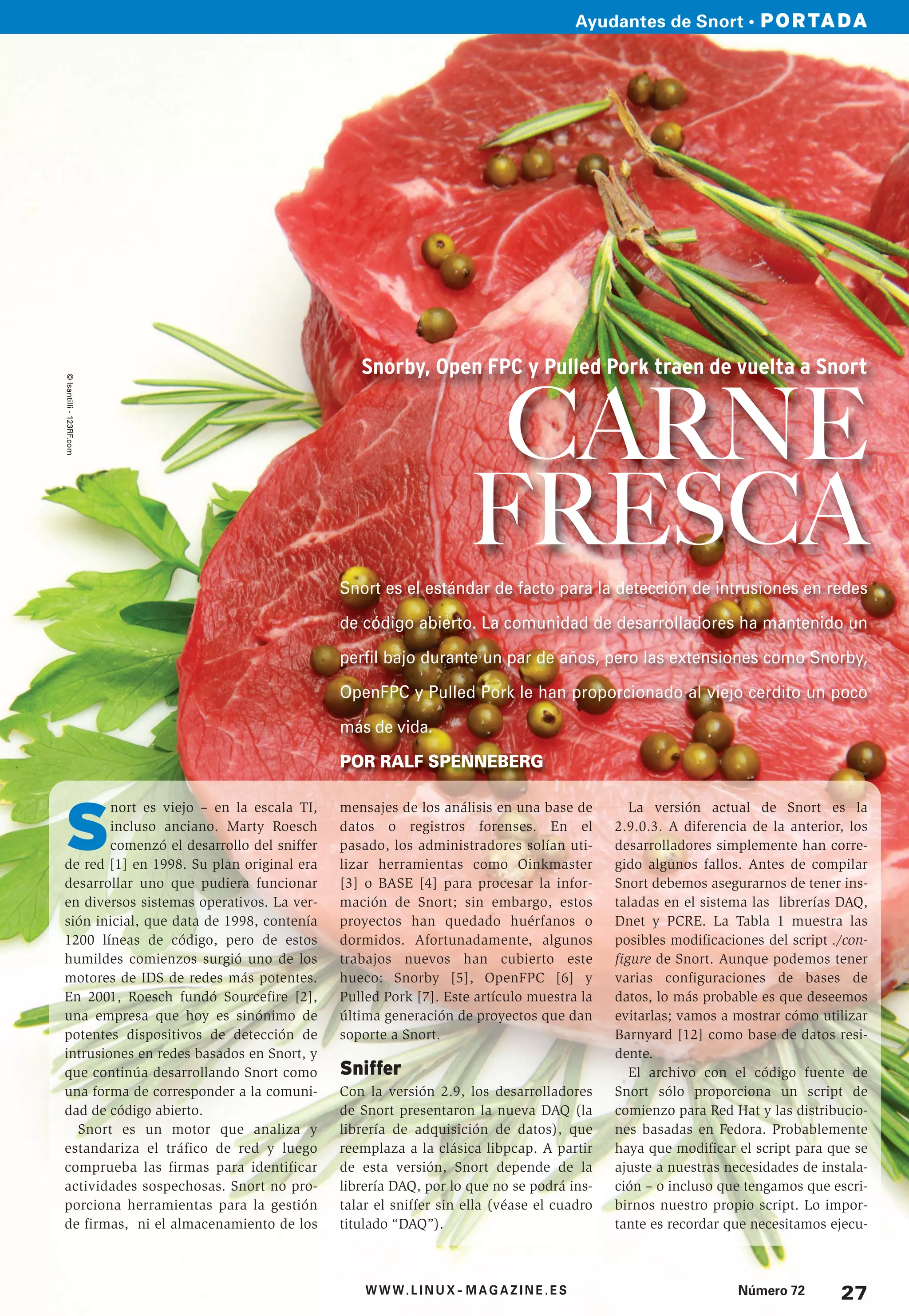 Este documento describe varias herramientas que ayudan a Snort, el motor de detección de intrusiones de código abierto más popular. Snorby, OpenFPC y Pulled Pork proporcionan funcionalidades como almacenamiento de datos, actualización de reglas y una interfaz web para Snort. Barnyard2 extrae datos de los archivos de registro de Snort y los almacena en una base de datos, liberando recursos del servidor. Pulled Pork actualiza automáticamente las reglas de detección mediante una tarea programada.
