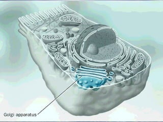 El documento presenta una guía de viaje a través de una célula viviente, explicando las principales estructuras y procesos celulares como la membrana, lisosomas, mitocondrias, cloroplastos, núcleo, retículo endoplásmico, cuerpos de Golgi y ciclo celular. El capitán Cariote lleva a los visitantes en un recorrido detallado para observar la superficie celular, movimiento de moléculas, digestión, producción de energía, fotosíntesis, sí
