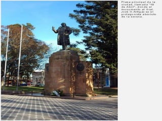 Este documento lista numerosos sitios patrimoniales y monumentos históricos de Uruguay, incluyendo el Teatro Solís, la Catedral y varios monumentos en Tacuarembó, así como el Palacio Legislativo, Estadio Centenario, y monumentos en Montevideo y Maldonado. También menciona varios lugares naturales como el Valle Eden, Cueva del Oso e Iporá en Tacuarembó.