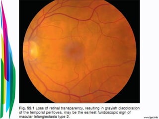 Macroaneurismas retinianos adquiridos son dilataciones de arteriolas retinianas que ocurren principalmente en personas de mediana edad y mayores. Generalmente son asintomáticos pero pueden causar disminución de la agudez visual debido a sangrado, edema o exudados. Su diagnóstico se realiza con angiografía y tienen buen pronóstico si se trombosan e involucionan espontáneamente.