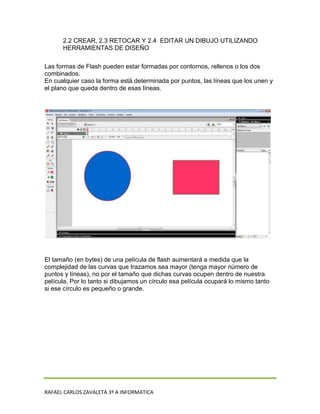 Este documento proporciona instrucciones para manipular dibujos y gráficos en Macromedia Flash 8. Explica cómo configurar la página, establecer las propiedades del escenario, y utilizar herramientas como la línea, el lápiz, la selección y la importación/exportación de imágenes. También cubre cómo convertir objetos en símbolos y separar dibujos e imágenes en un programa de diseño.