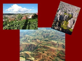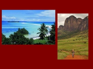 Madagascar es una isla situada frente a la costa de África y es el hogar de muchas especies únicas debido a su aislamiento. Alberga el 58% de las especies de plantas y animales del mundo, incluidos los lemures y seis especies endémicas de baobab. Tiene una rica variedad de fauna y flora debido a su largo aislamiento, y platos típicos como el romazava y el ravioto.
