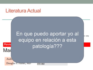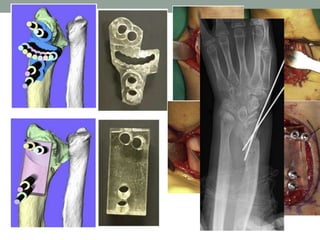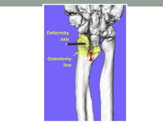 Este documento resume la deformidad de Madelung, incluyendo su definición, epidemiología, diagnóstico, tratamientos y novedades en la literatura. La autora propone un proyecto para utilizar guías quirúrgicas personalizadas creadas mediante impresión 3D para realizar osteotomías en pacientes con esta patología.