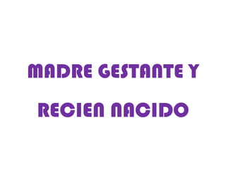 El documento habla sobre el control prenatal de una madre gestante y su recién nacido. Durante cada visita al centro médico, le tomarán el peso, presión arterial y medirán el tamaño del útero para verificar el crecimiento del bebé y escuchar los latidos del corazón. La madre debe comer un poco más durante el embarazo, incluyendo carne, pescado, huevos, leche, frutas y verduras. La ropa debe ser cómoda y usar sostenes y zapatos más grandes a medida que crecen sus senos.