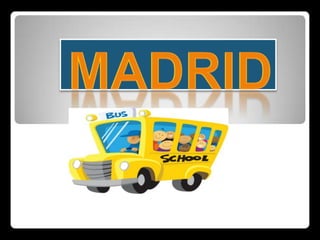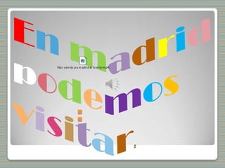 El documento menciona varios lugares de interés en Madrid como el estadio Santiago Bernabéu, el parque de atracciones Warner Bros Studio y museos como el Palacio de Hielo, Museo de Cera, Museo del Prado y Museo Príncipe Felipe.